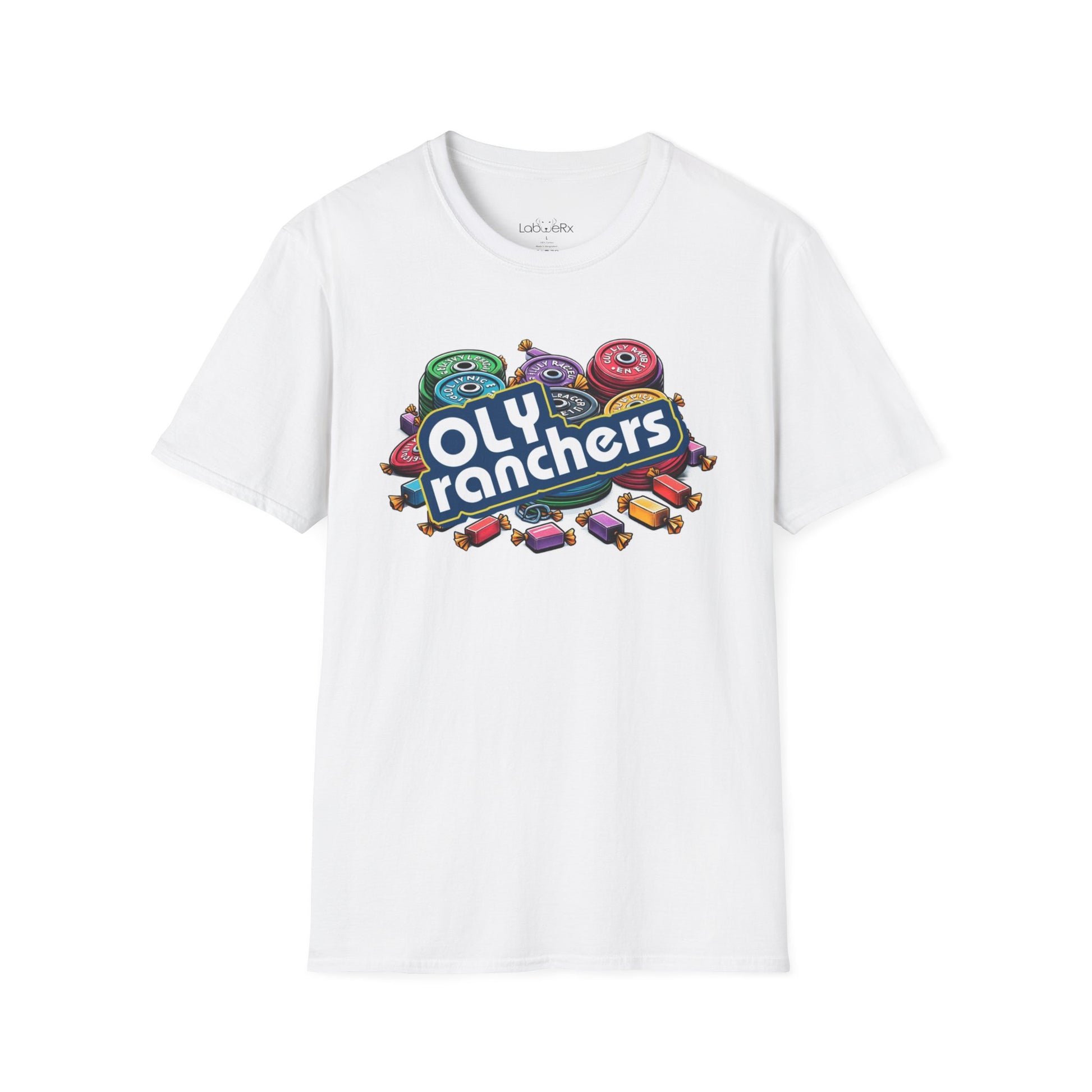 OLY RANCHERS Competition Team T-Shirt. That's a wrap! A delicious wrapped mouthwatering hard candy. If you're crew is like delicious hard candy ready to crack some teeth, get your oly-bars ready to rock.